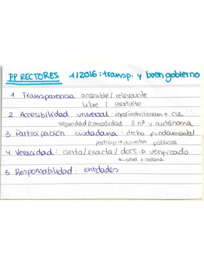 Tarjetas didácticas o flashcards sobre aspectos importantes de la ley de transparencia y buen gobierno 1/2016