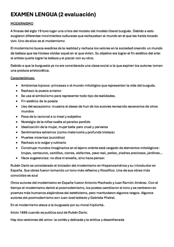 Apuntes de literatura sobre el modernismo, con autores, obras, características...