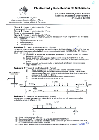 He publicado nuevos examenes de 2º Elasticidad y Resistencia de Materiales: 27-junio-13.pdf