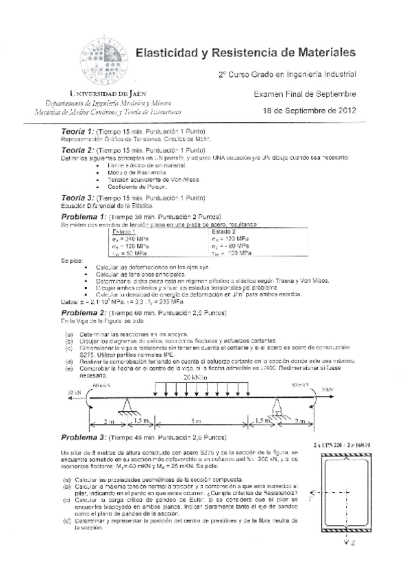 He publicado nuevos examenes de 2º Elasticidad y Resistencia de Materiales: 18-septiembre-12.pdf