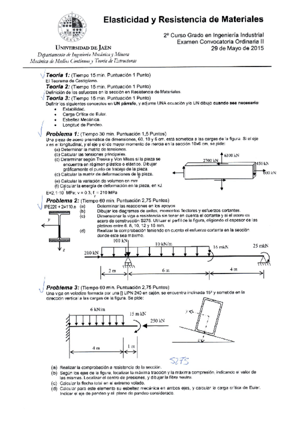 He publicado nuevos examenes de 2º Elasticidad y Resistencia de Materiales: 29-mayo-15.pdf