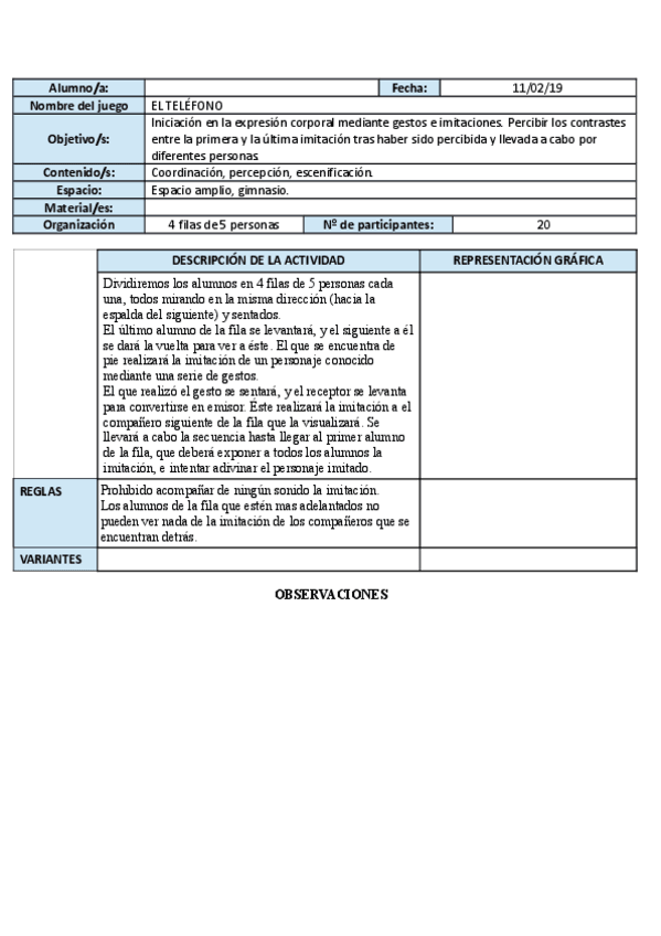 DIARIO PRÁCTICAS 2019 EXPRESIÓN CORPORAL