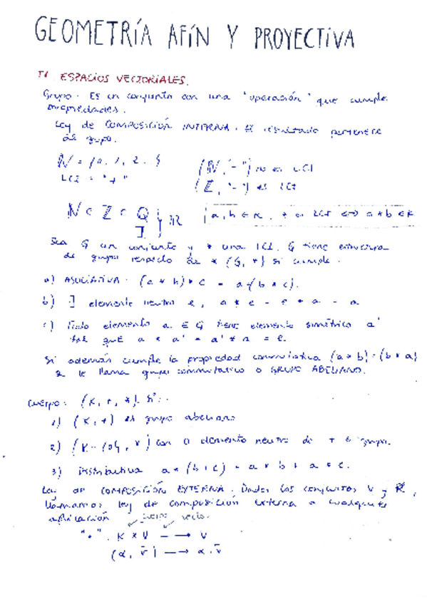 He publicado nuevos apuntes de 1º Geometría Afin y Proyectiva: Resumen-temario.pdf