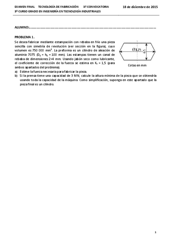 He publicado nuevos examenes de 4º Tecnología de Fabricación: Problemas 1ª Convocatoria 2015-16 Resueltos(1).pdf