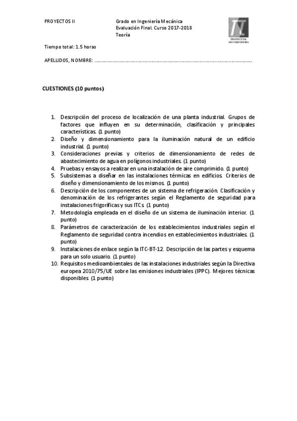 He publicado nuevos examenes de 4º Proyectos II: PII Final 17-18 (teoría).pdf