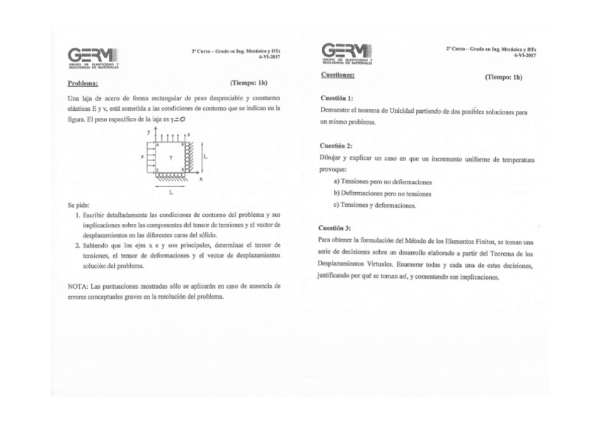 He publicado nuevos examenes de 2º Elasticidad y Resistencia de Materiales: Parciales Curso 2016/2017