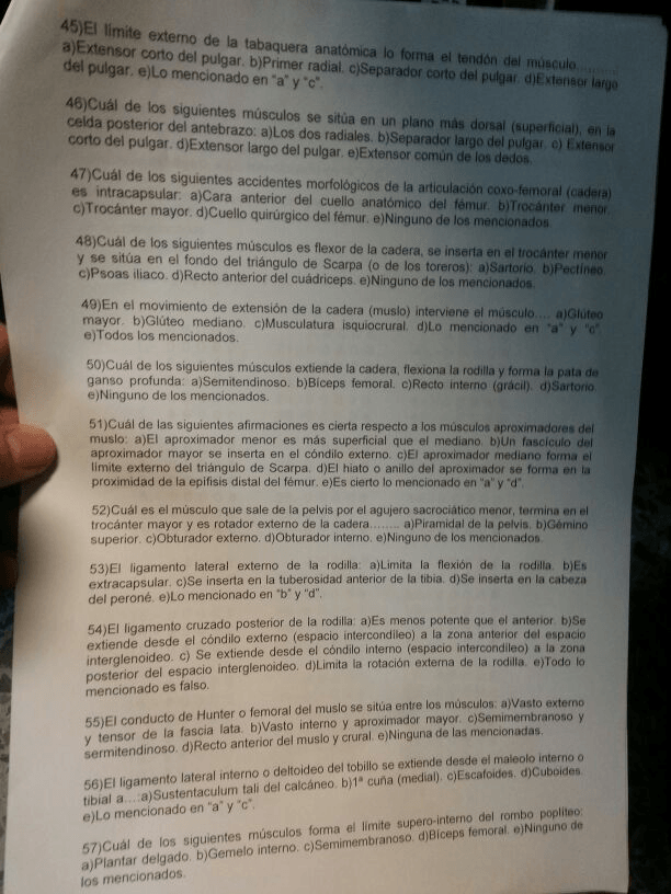Exámenes sueltos Anatomía Humana