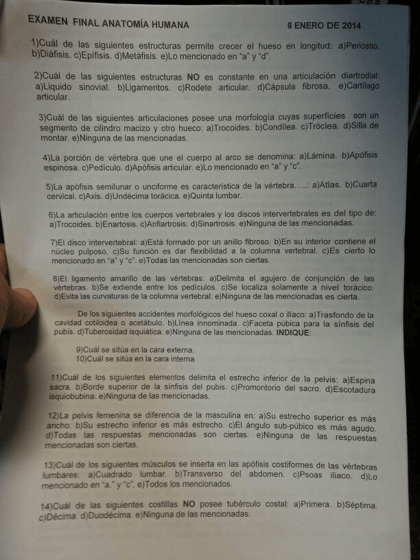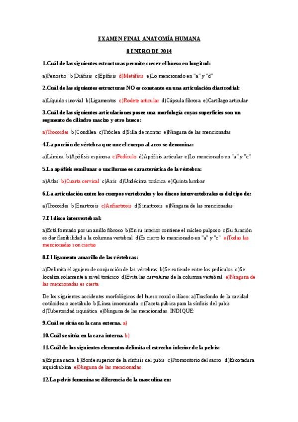 Examen Enero 2014 Anatomía Humana