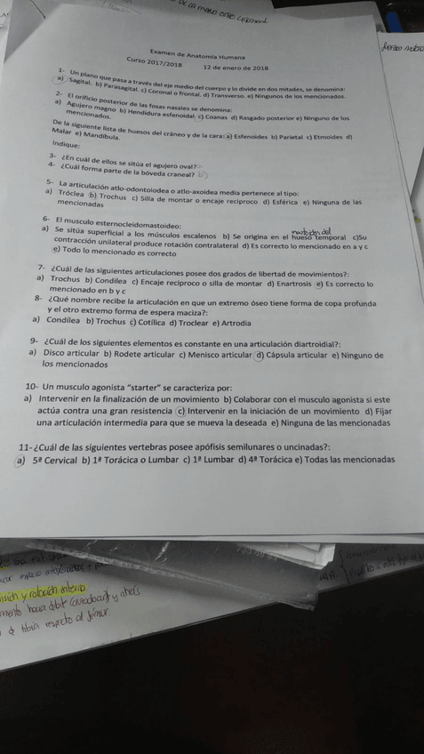 Examen Enero 2018 Anatomía Humana
