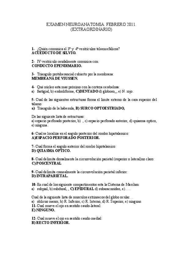 Examen febrero 2011 Anatomía Humana II