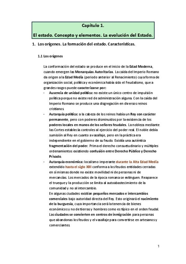 Resumen muy completo del Tema 1 de Estado Constitucional.
