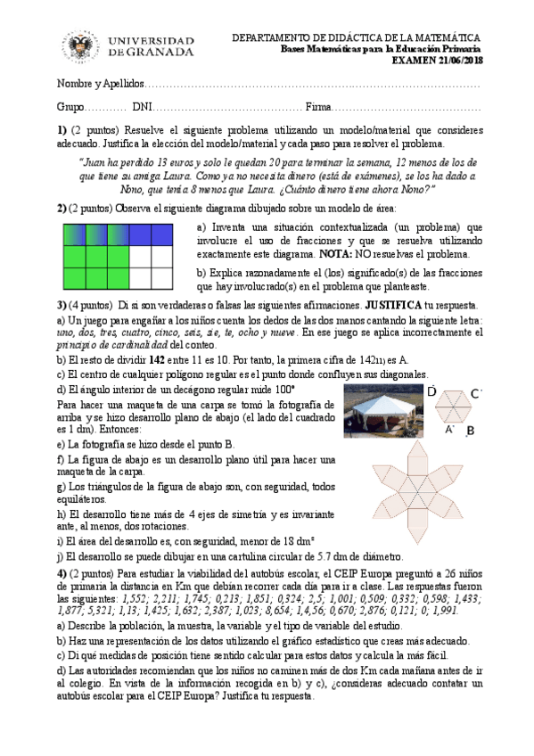 He publicado nuevos apuntes de 1º Bases Matemáticas Para la Educación Primaria: EXÁMENES MUESTRA JESÚS MONTEJO