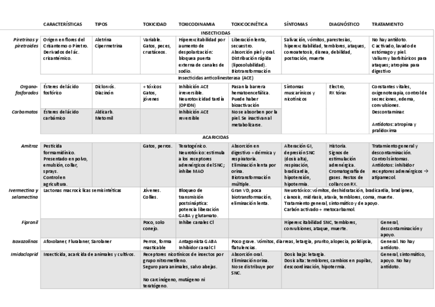 He publicado nuevos apuntes de 3º Toxicología: resumen tablas