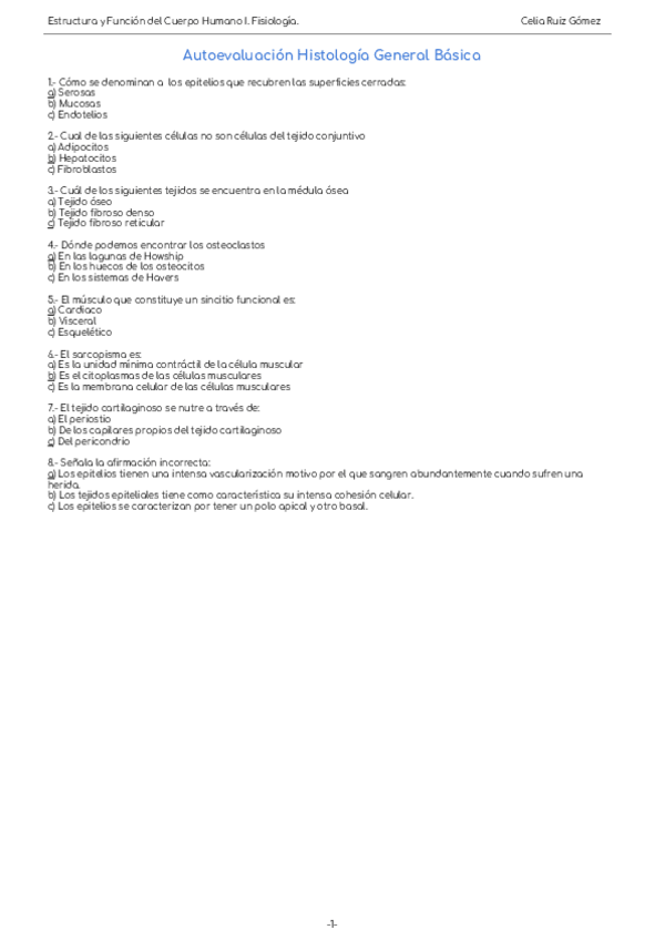 He publicado nuevos apuntes de 1º Estructura y Función del Cuerpo Humano I: Autoevaluaciones Fisiología