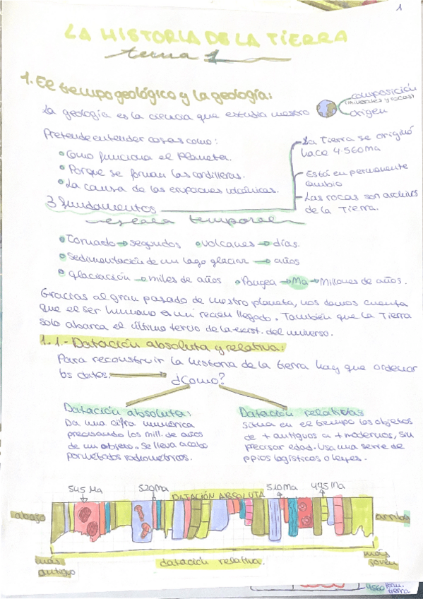 teneis subidos apuntes sobre la historia de la tierra, el primer tema de geología de 1o de bachillerato