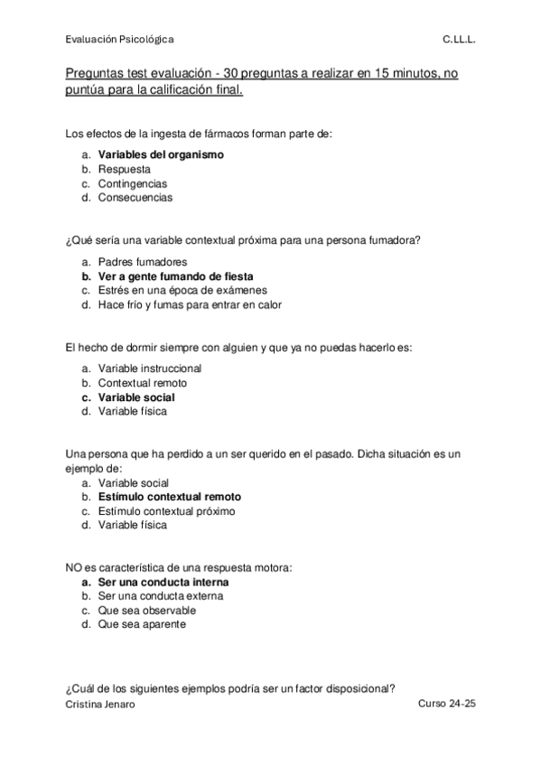 Preguntas del quinto test, sin soluciones marcadas, SOLUCIONES AL FINAL. En este test hay preguntas específicas del grupo B1