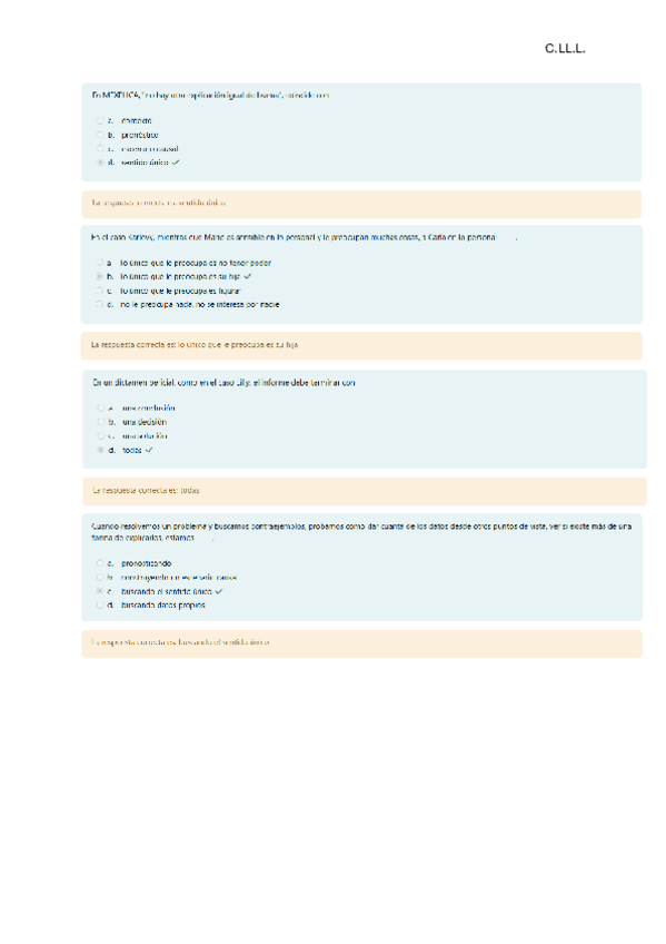 Preguntas del quinto test con las soluciones marcadas. En este test hay preguntas específicas del grupo B1