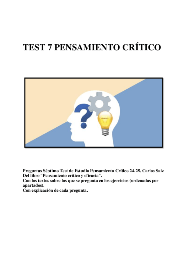 Test 7 pensamiento Crítico. Grupo B. Con soluciones y explicaciones completas.