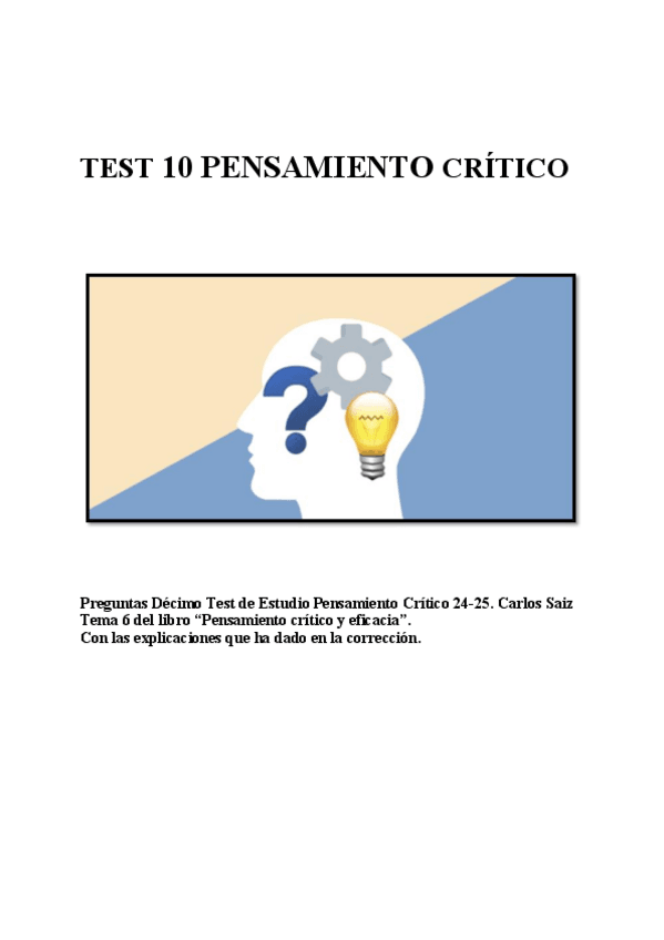 Test 10 pensamiento Crítico. Grupo B. Con soluciones y explicaciones