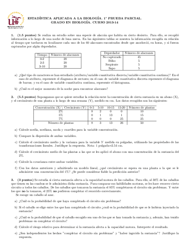 He publicado nuevos examenes de 1º Estadística Aplicada a la Biología: Primer_Parcial_2013_2014.pdf