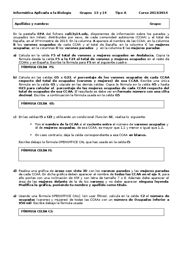 He publicado nuevos examenes de 1º Informática Aplicada a la Biología: Exámenes Calc y Perl