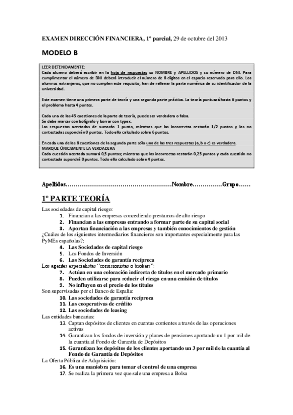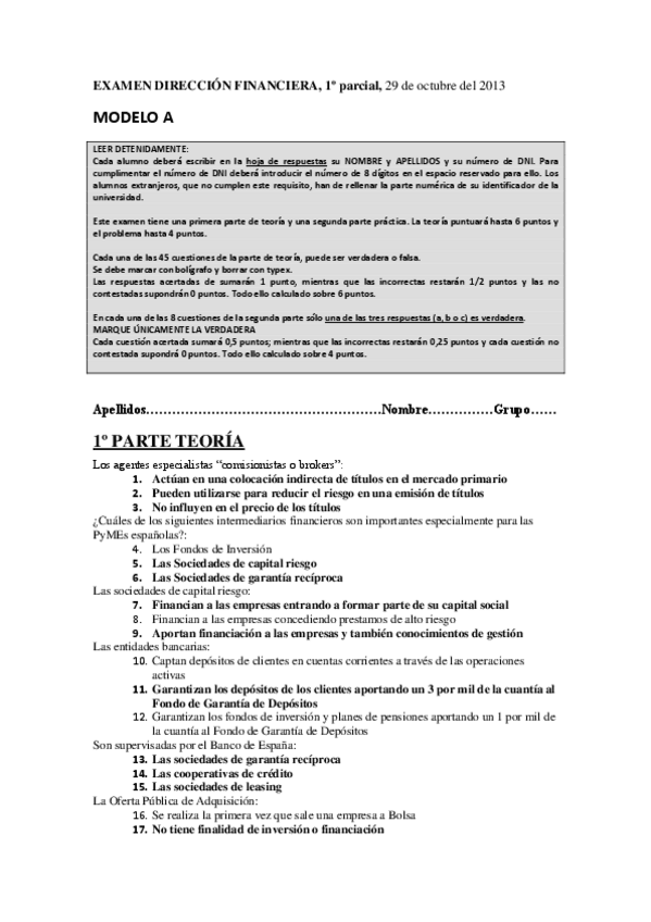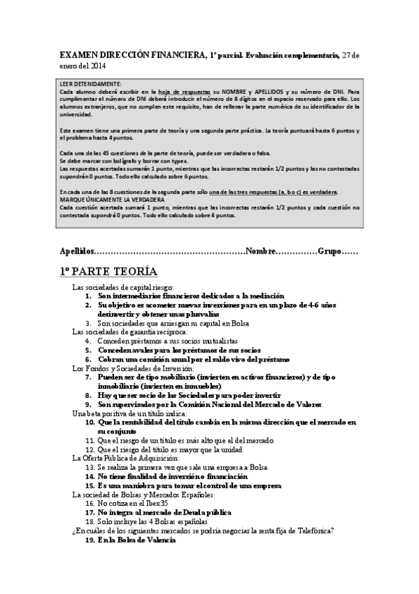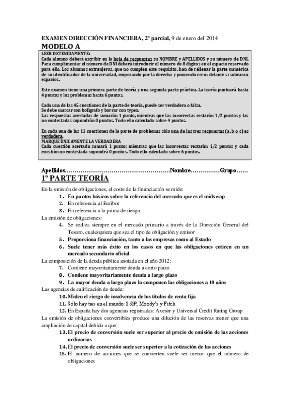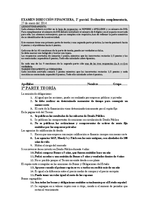 He publicado nuevos examenes de 4º Dirección Financiera: Exámenes Varios Años