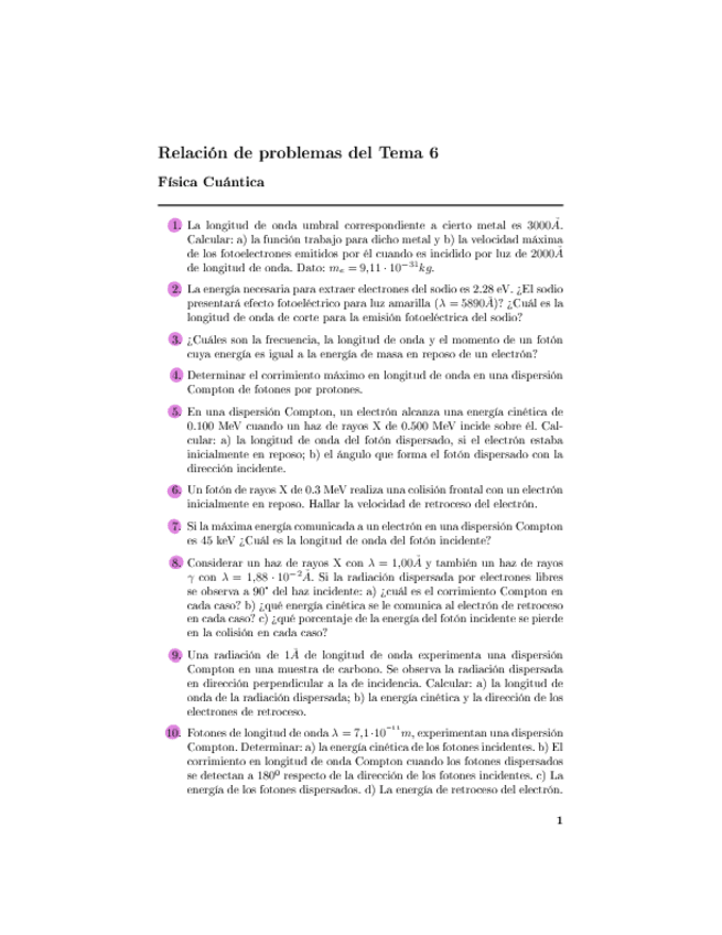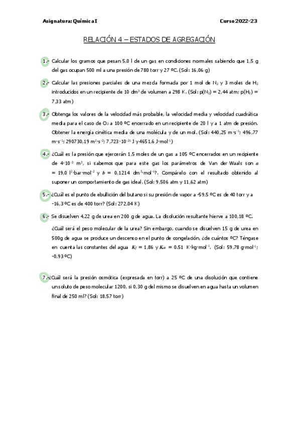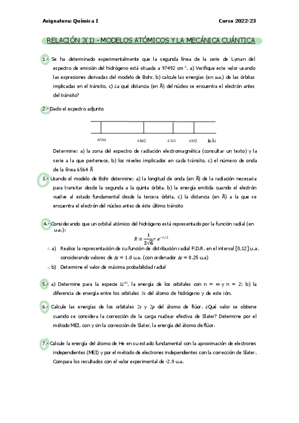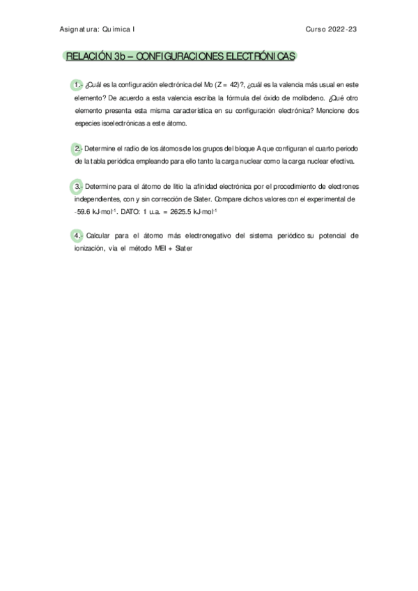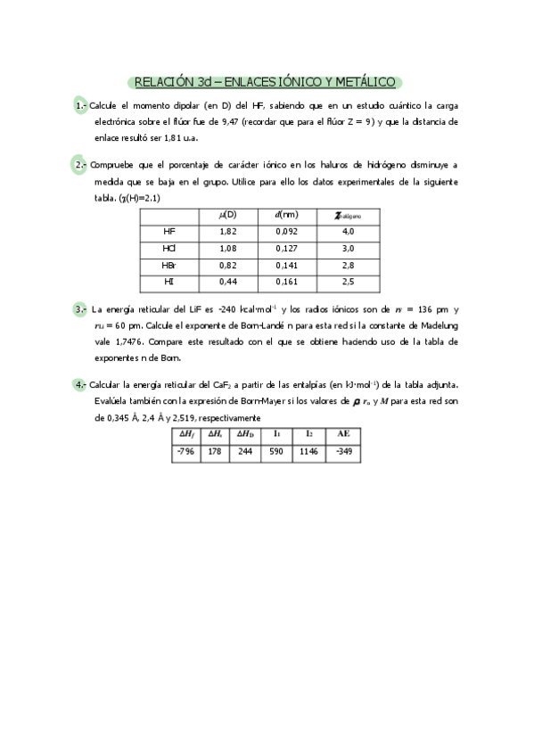 He publicado nuevos ejercicios de 1º Química I: Ejercicios relación