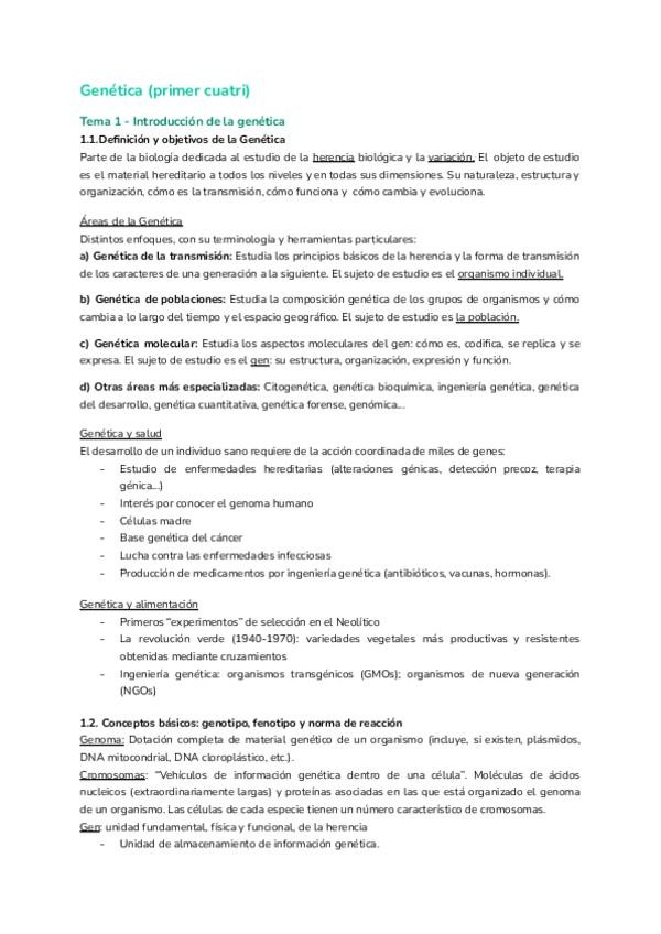 Aquí está todo el temario del primer cuatrimestre de genética, separado por pares de temas.