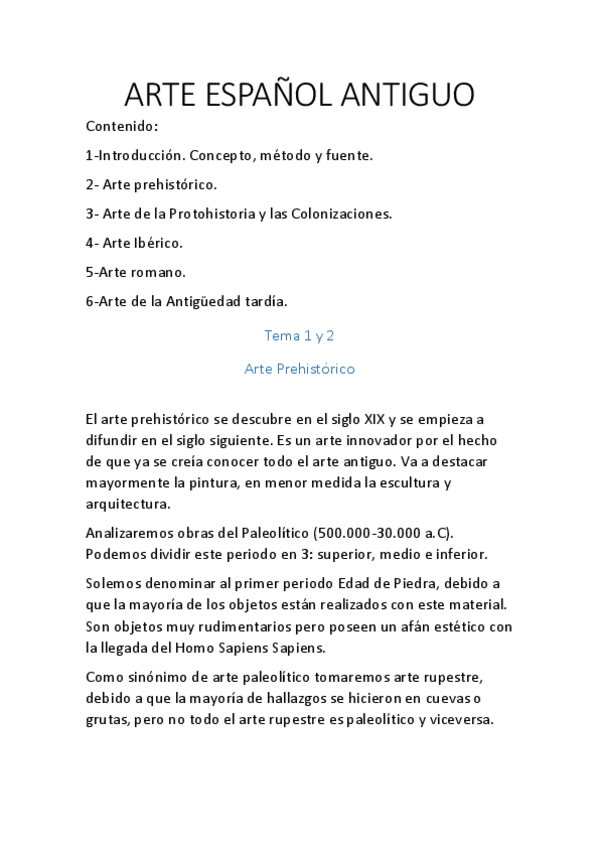 He publicado nuevos apuntes de 1º Arte Español Antiguo: Temas 1-4