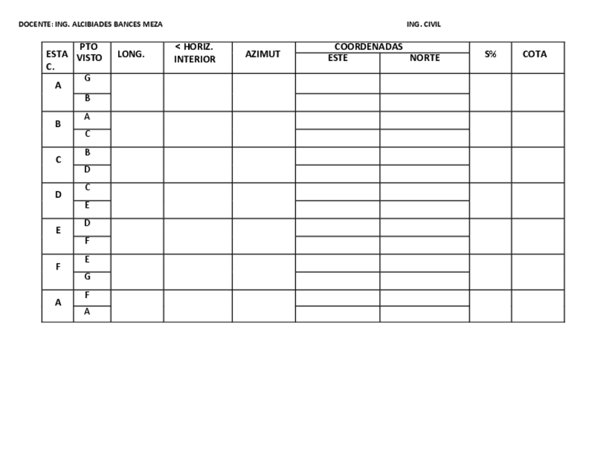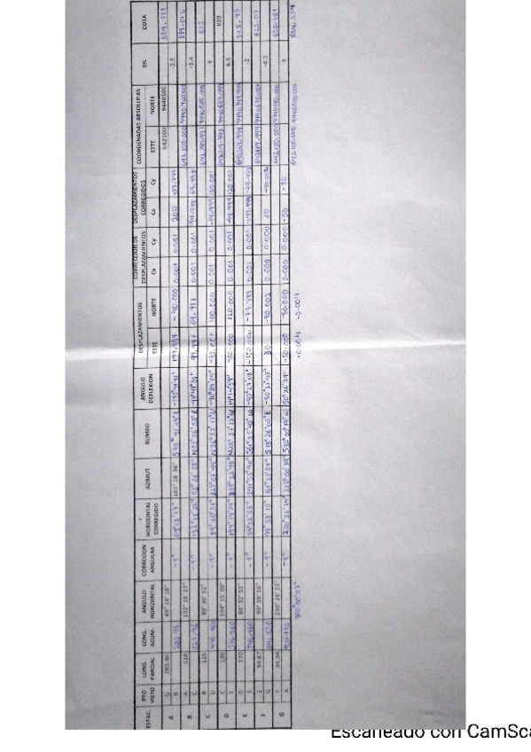 Cuadro de examen final de topografía