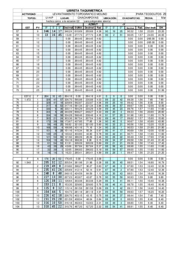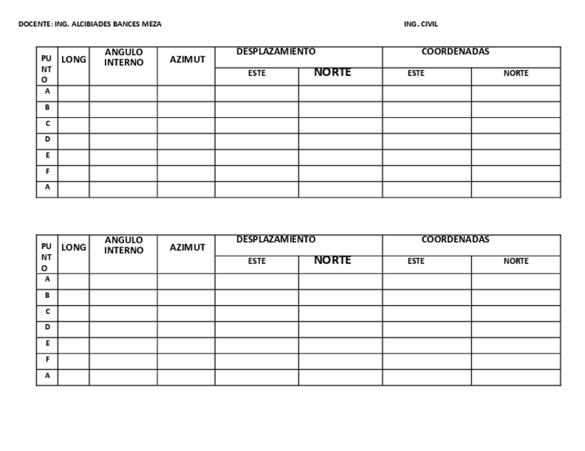 -Poligonal -Cuadro de poligonal -Perfil longitudinal