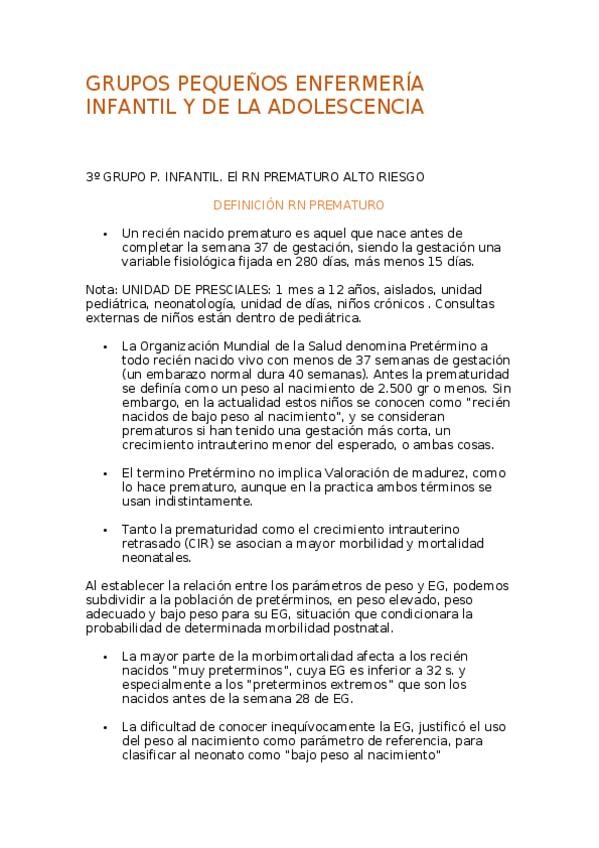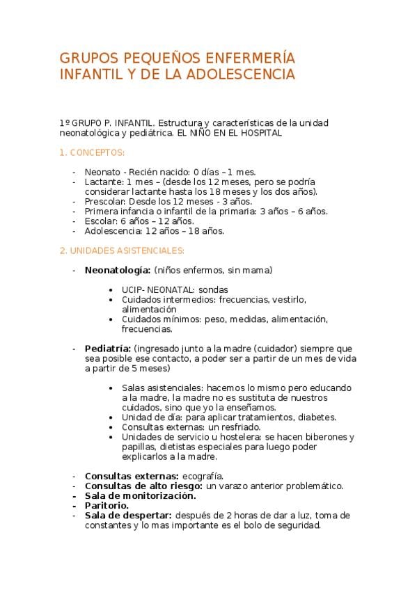 He publicado nuevos apuntes de 3º Enfermeria infantil y de la adolescencia: Grupos pequeños infantil: sesiones (1-6)