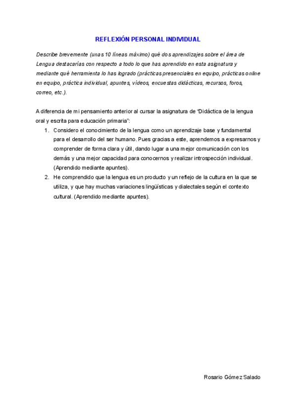 He publicado nuevos trabajos de 2º Didáctica de la lengua oral y escrita para la educación primaria: Reflexion-personal-individual.pdf