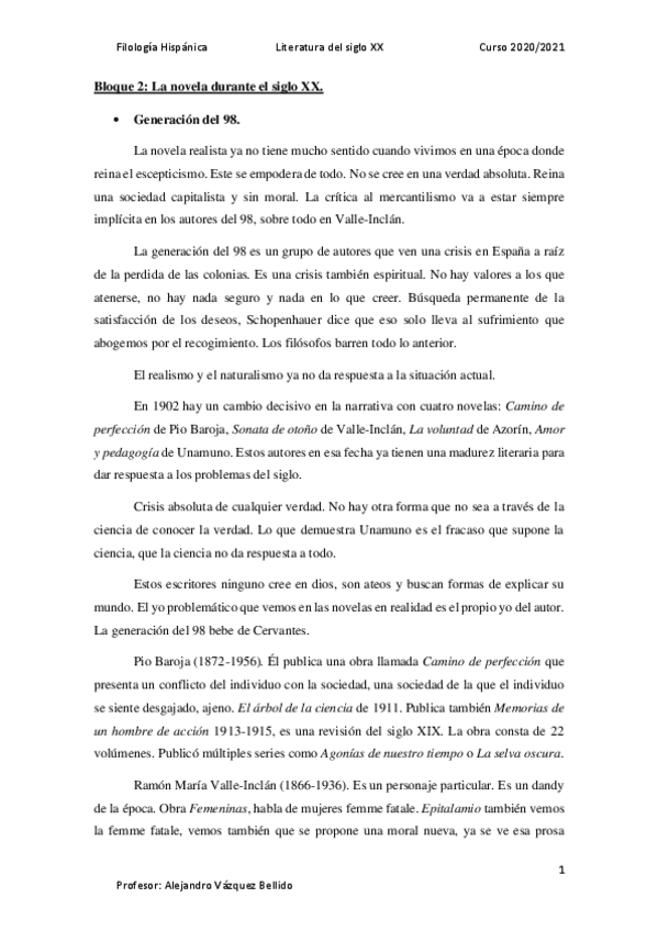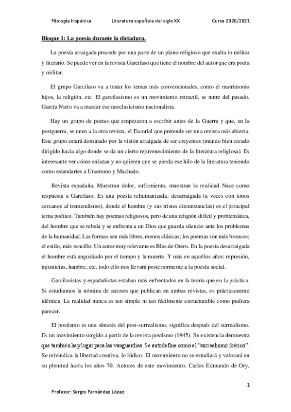 He publicado nuevos apuntes de 4º Literatura Española del Siglo Xx: Apuntes 2020/2021