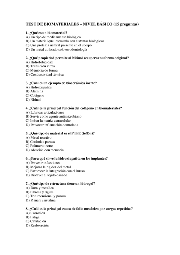 Test Sacado del temario con diferentes preguntas. Respuestas cada 15 preguntas