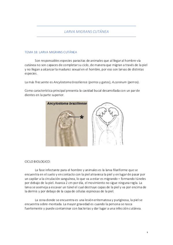 He publicado nuevos apuntes de 2º Parasitología: TEMA 18 - LARVA MIGRANS CUTANEA .pdf