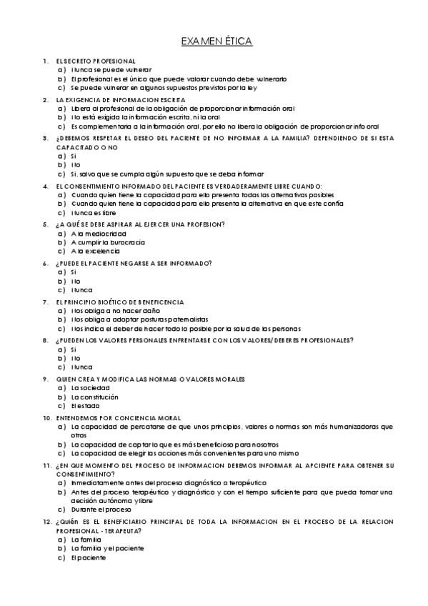 He publicado nuevos examenes de 2º Etica Profesional, Marco Legal y Filosofía del Cuidado: TODOS-EXAMENES-ETICA.pdf