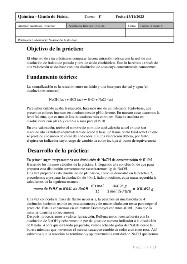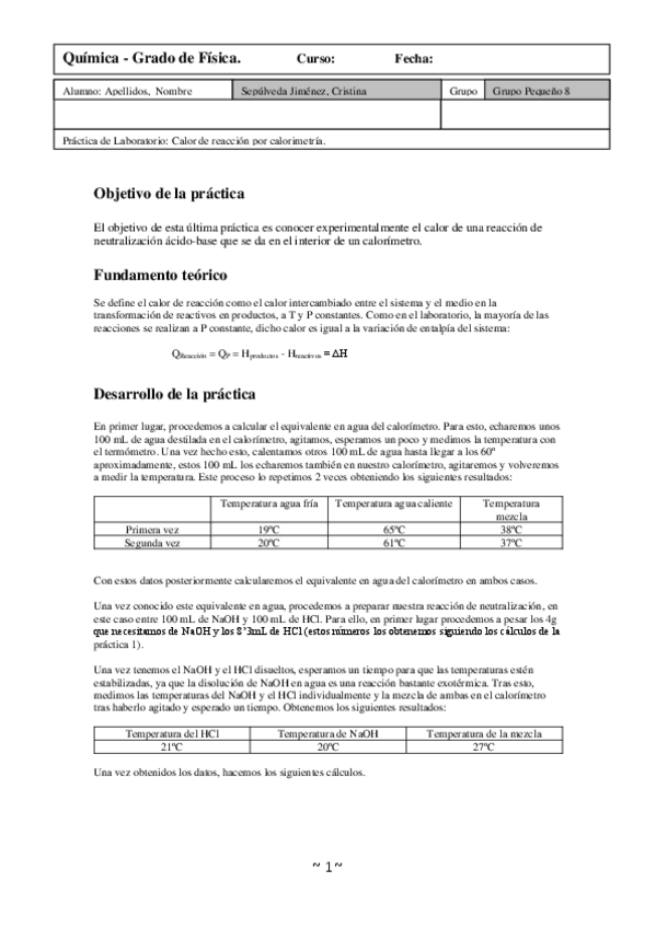He publicado nuevos practicas de 1º Química: Informes de laboratorio