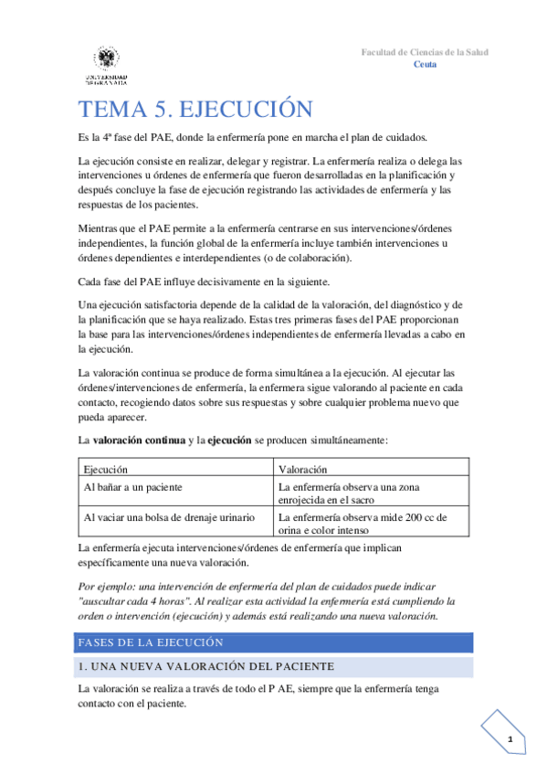 He publicado nuevos apuntes de 1º Proceso de Enfermería y Cuidados Básicos: TEMA-5-EJECUCION.pdf