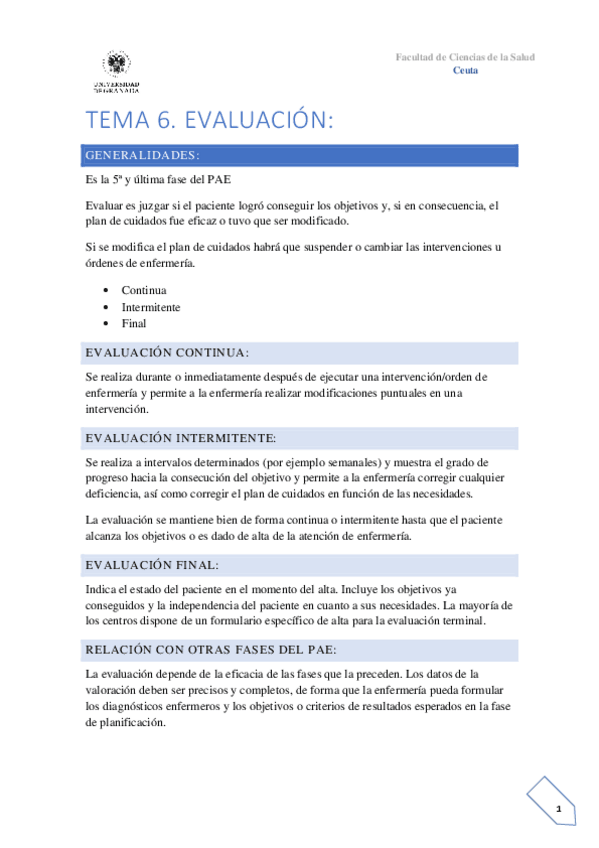 He publicado nuevos apuntes de 1º Proceso de Enfermería y Cuidados Básicos: TEMA-6.-EVALUACION.pdf