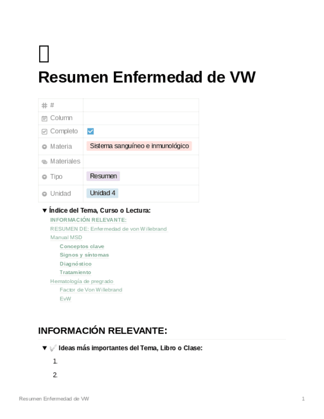 He publicado nuevos apuntes de 2º Sistema Sanguíneo e Inmunológico: Enfermedad-de-Von-Willebran.pdf