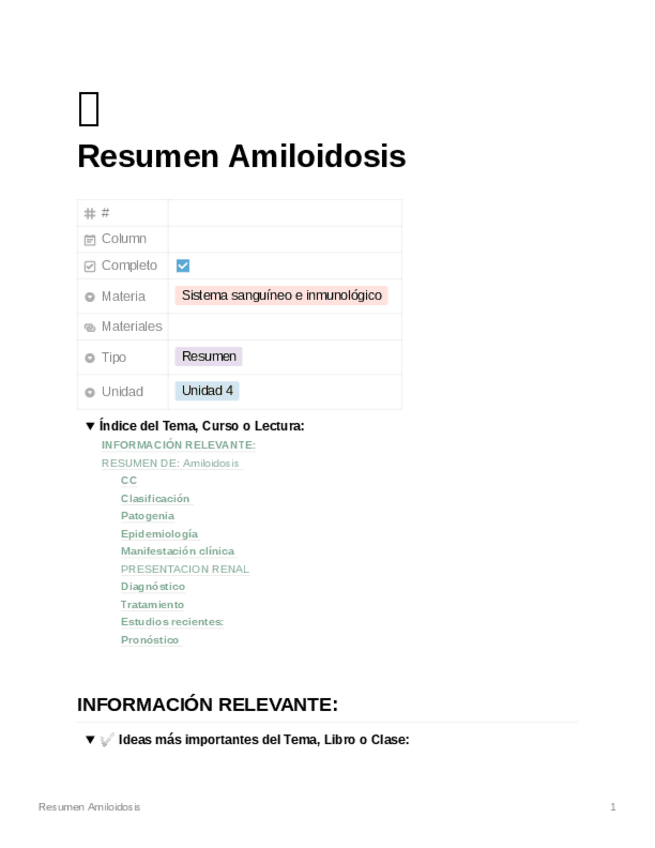 He publicado nuevos apuntes de 2º Sistema Sanguíneo e Inmunológico: Amiloidosis.pdf