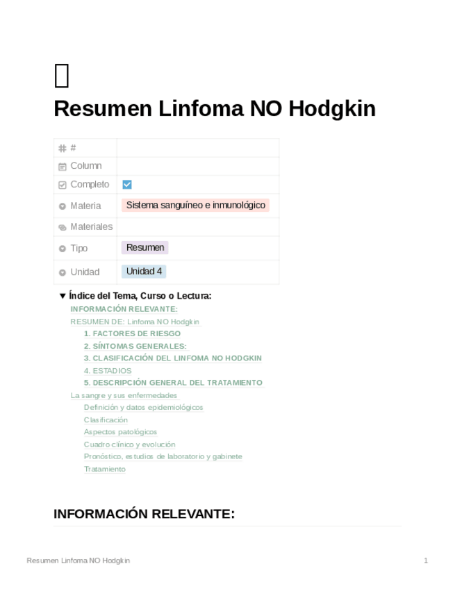 He publicado nuevos apuntes de 2º Sistema Sanguíneo e Inmunológico: Linfoma-NO-Hodgkin.pdf