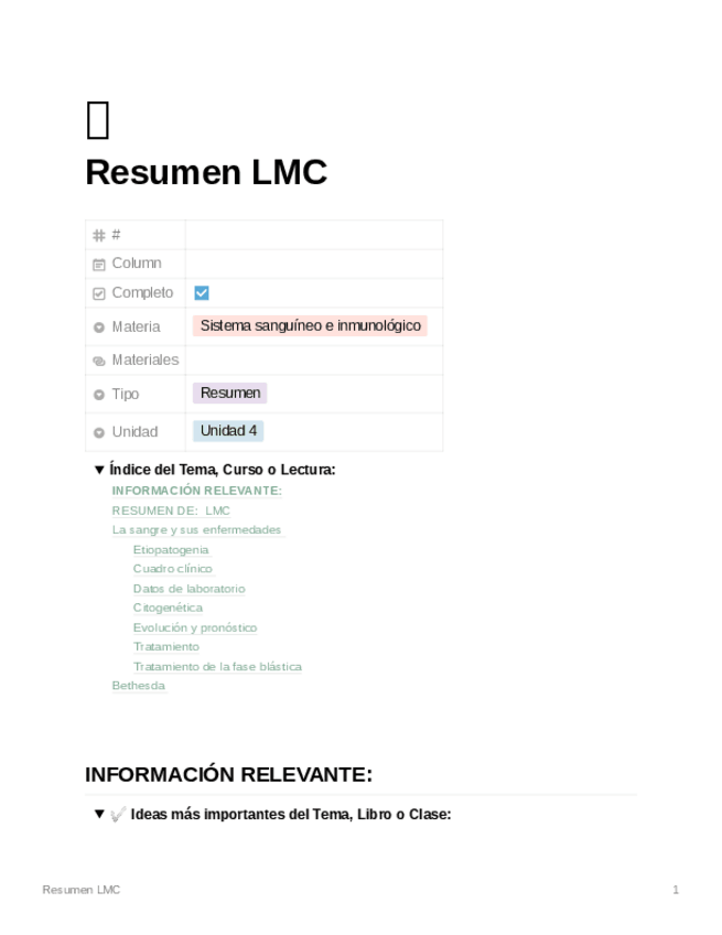 He publicado nuevos apuntes de 2º Sistema Sanguíneo e Inmunológico: Leucemia-mielocitica-cronica.pdf
