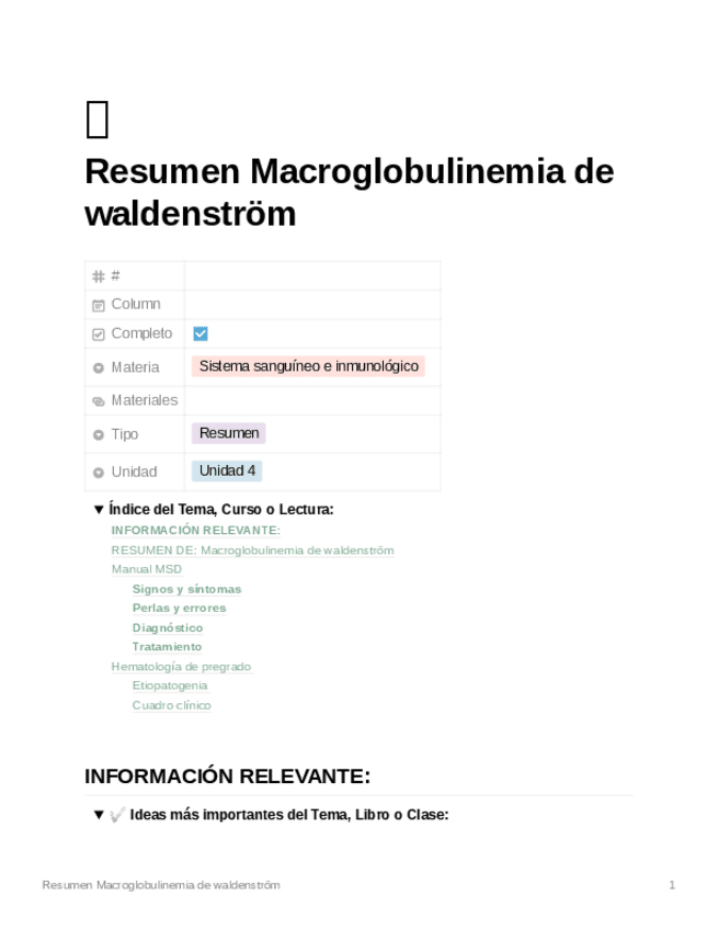 He publicado nuevos apuntes de 2º Sistema Sanguíneo e Inmunológico: Macroglobulinemia-de-waldenstrm.pdf