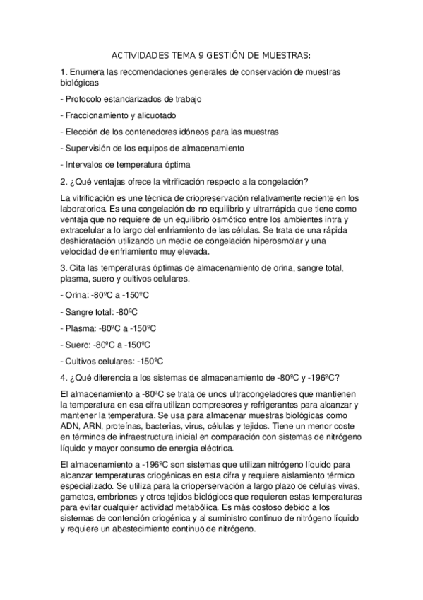 Actividades resueltas Tema 9 Gestión de muestras biológicas