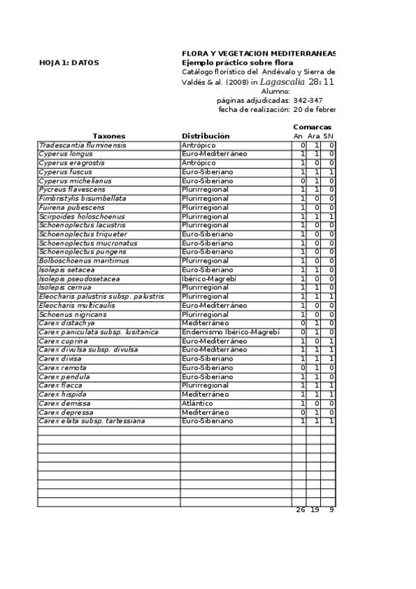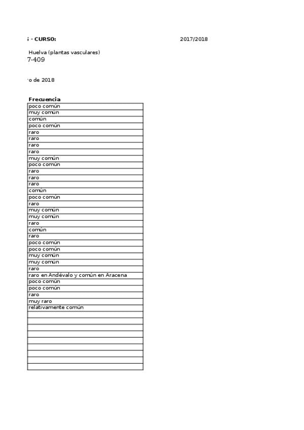 He publicado nuevos apuntes de 4º Flora y Vegetación Mediterráneas: catálogo Huelva wuolah.xls