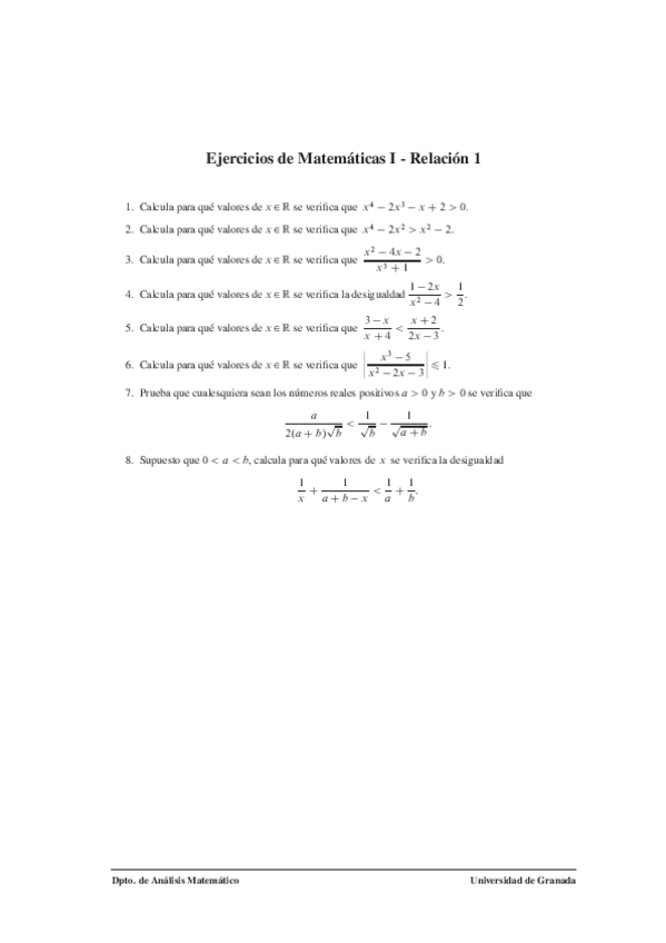 He publicado nuevos ejercicios de 1º Análisis Matemático: ejercicios de análisis matematico