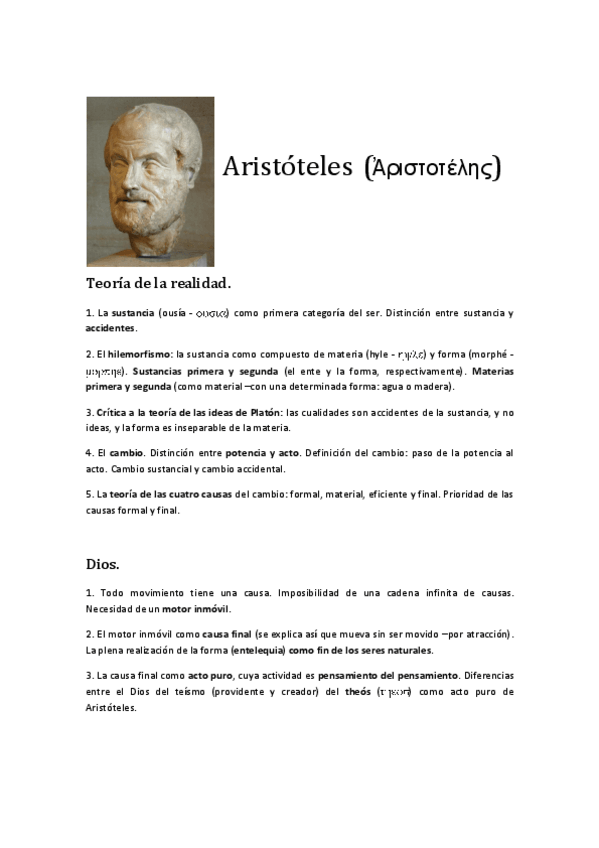 Problema de dios según Aristóteles subrayado y completo, acorde a lo que se pide en PAU