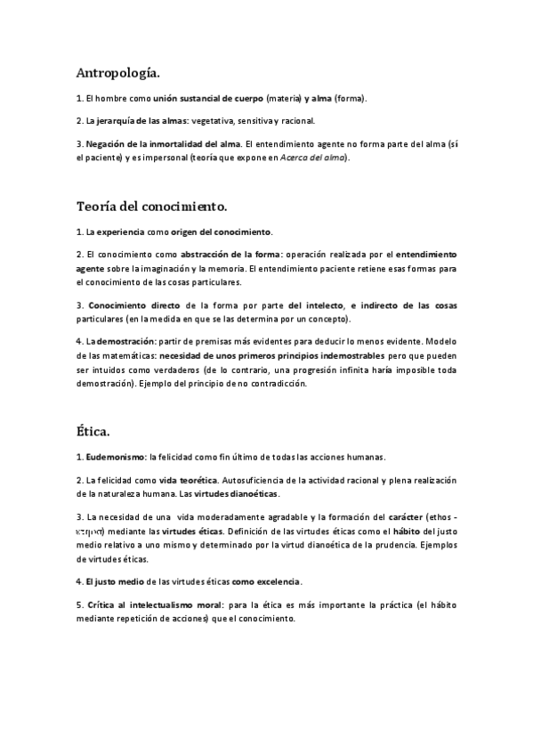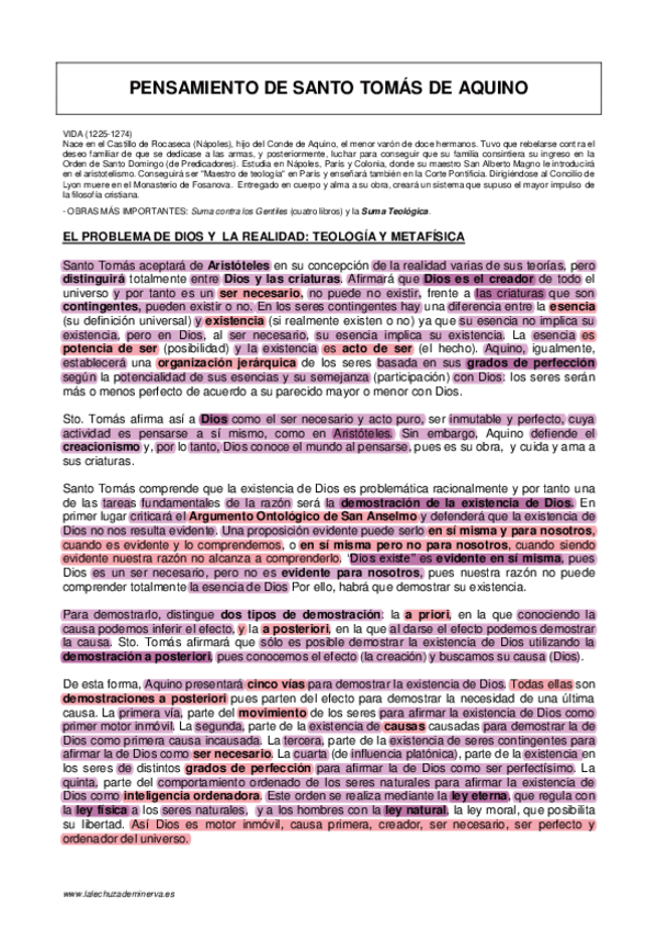 Conceptos básicos del pensamiento de Santo Tomás subrayados y con las palabras clave destacadas.